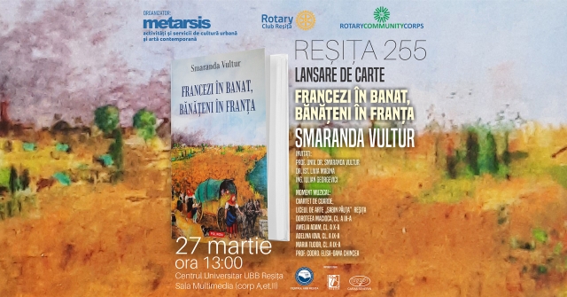 Vineri, 27 martie 2026, ora 13:00, sala Multimedia a Centrului Universitar Babeș-Bolyai din Reșița (corp A, et.II) va fi lansat volumul semnat Smaranda VULTUR FRANCEZI ÎN BANAT, BĂNĂȚENI ÎN FRANȚA, ed. Polirom, 2025.